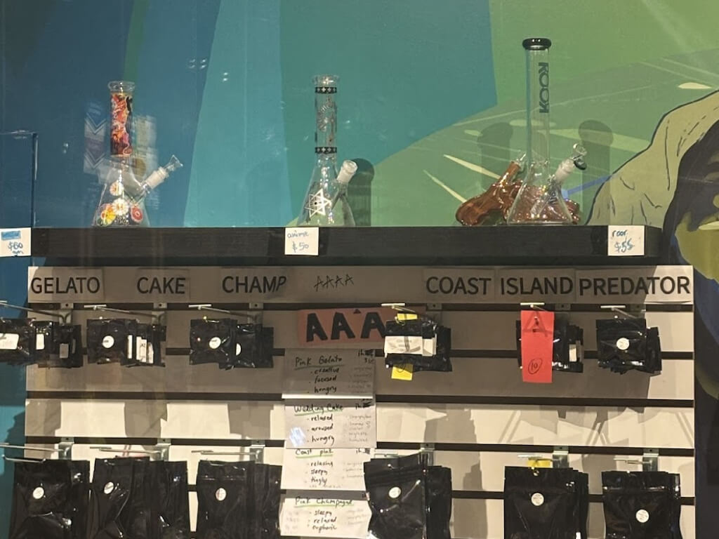 The store features a variety-focused menu that includes multiple flower strains across different quality tiers, along with edibles, concentrates, pre-rolls, and vape products. Open day and night, this location caters to both late-night shoppers and daytime customers looking for a straightforward buying experience.
