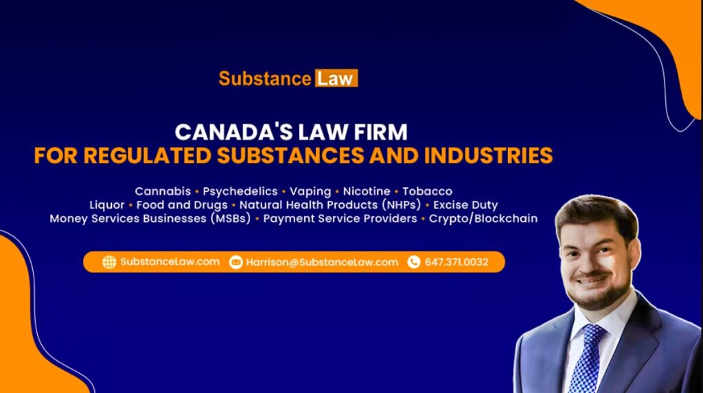 Substance Law is a Canadian law firm focused on regulated industries, including cannabis, psychedelics, vaping, liquor, tobacco, food and drugs, natural health products (NHPs), money services businesses (MSBs), FINTRAC, PCMLTFA, and crypto/blockchain law. The firm provides legal advice, facilitates M&A, licensing support, compliance consulting, and contract drafting, review and negotiation for businesses across Canada.